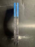 Blue burl G10 paired with black stabilized mango wood. GLOW & silver CF spacer with g10 accents and liner. Scales measure 1/4"x1-13/16"x5-1/4".