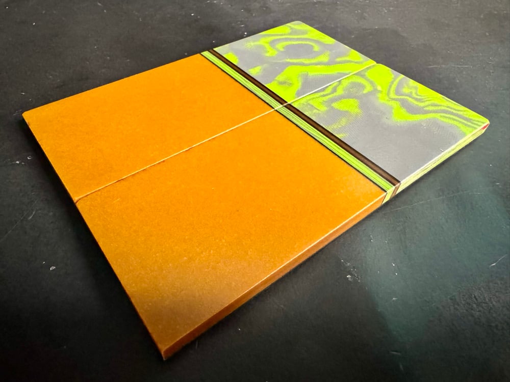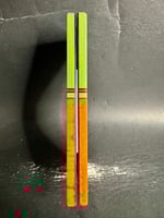 Toxic green & grey burl G10 paired with vintage butterscotch micarta. Micarta & G10 spacer with g10 accents and liner. Scales measure 1/4"x1-13/16"x4-15/16".