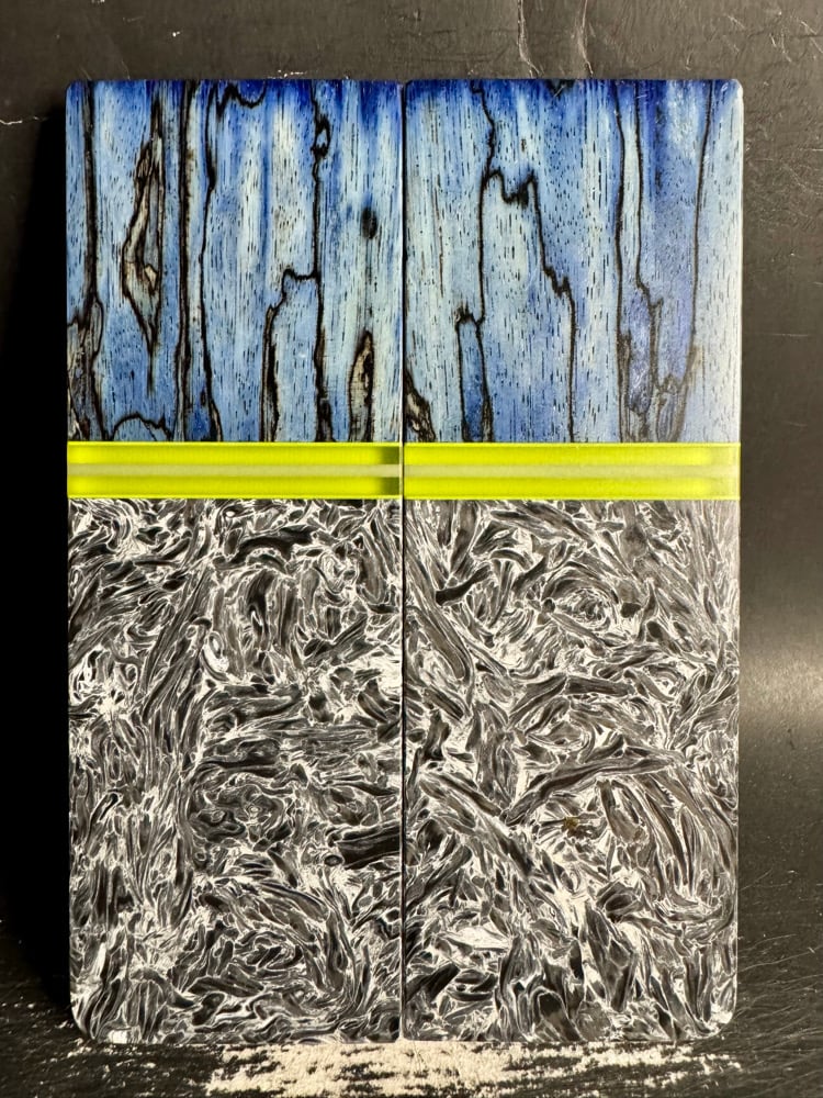 Spalted Tamarind & Fat Carbon GLOW Segmented Knife Scales
